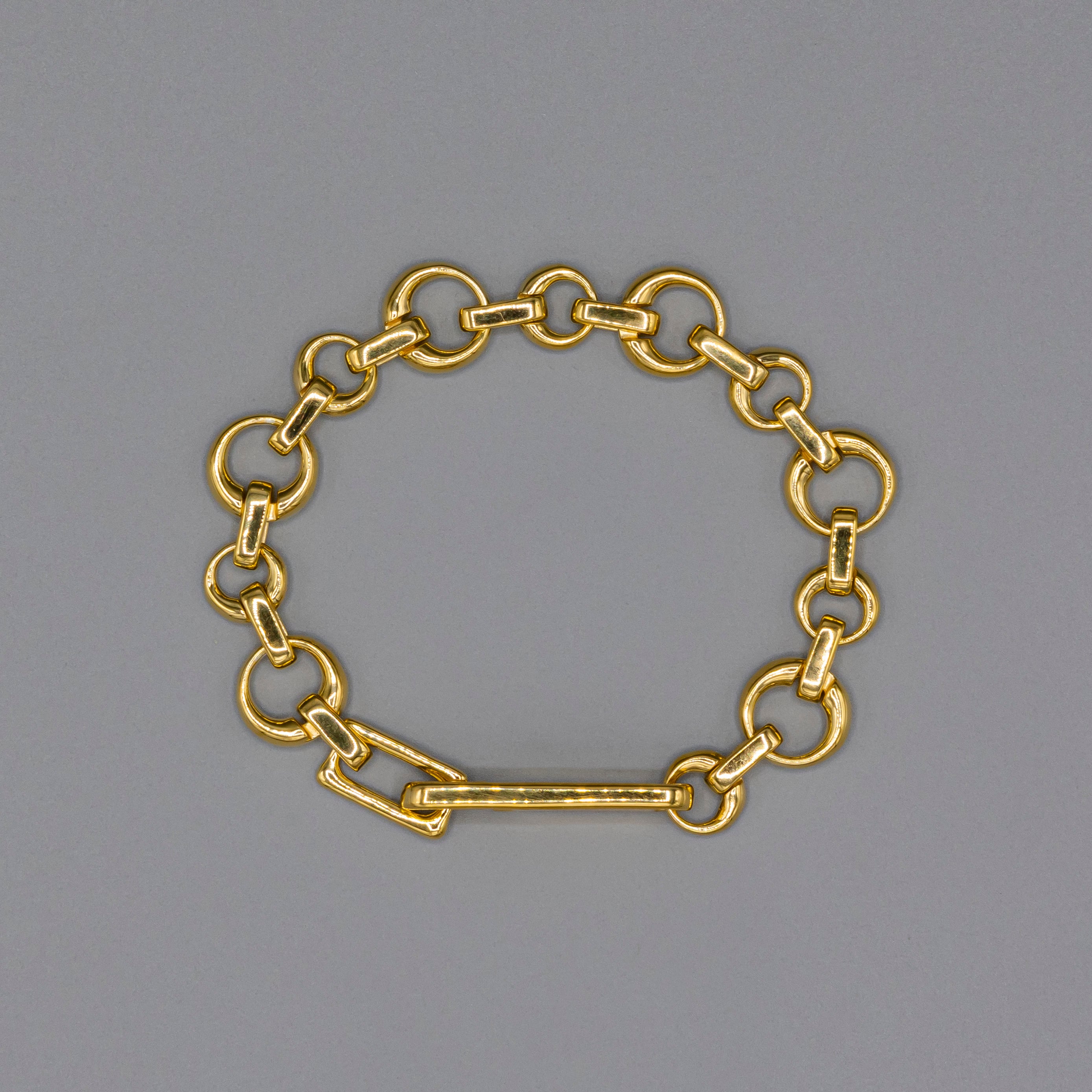 全体をチェーンのみで構成しながら、金色が繊細に光を跳ね返します。