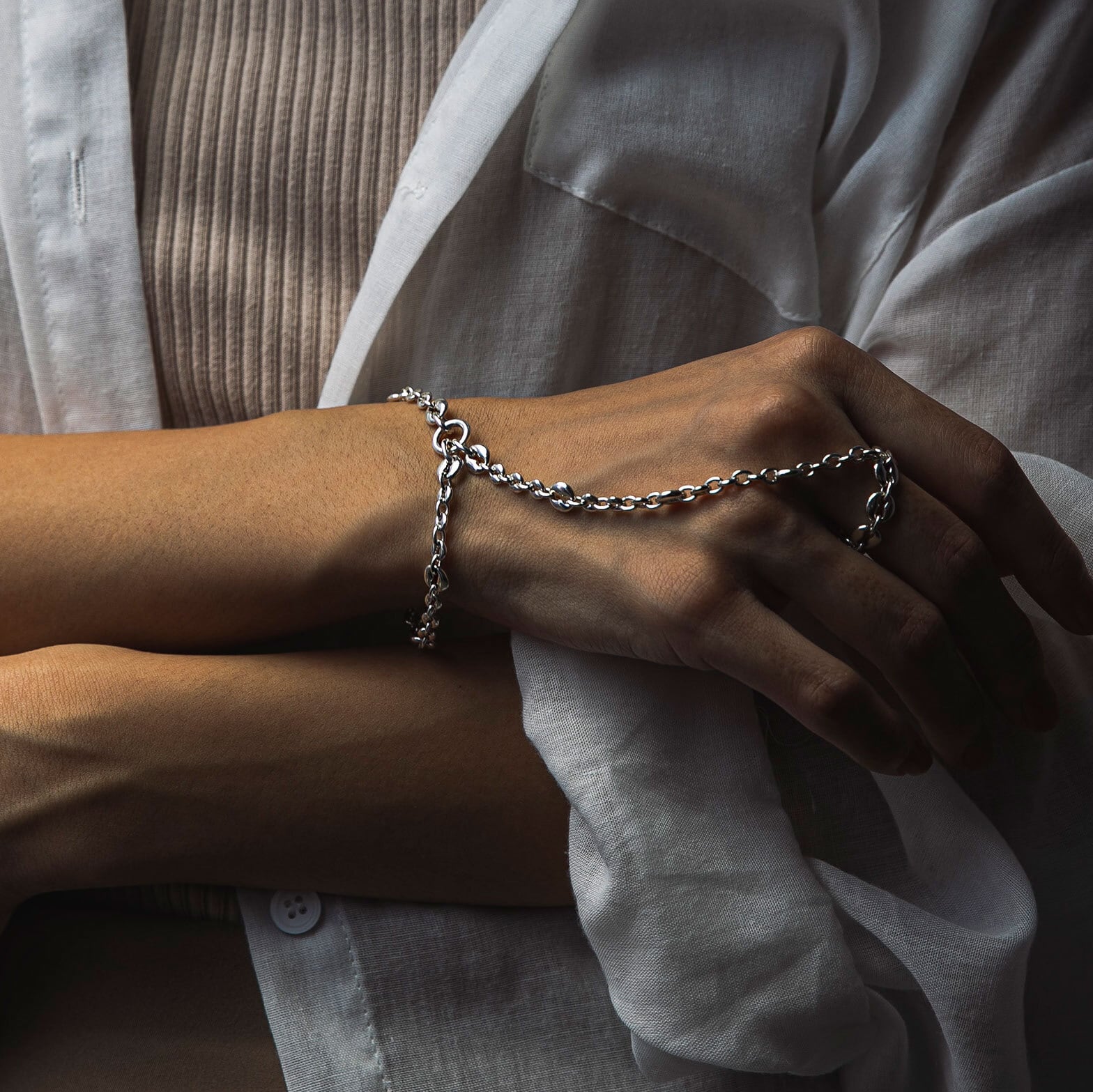 ブレスレットからリングまでオリジナルパーツで繋ぐ事により 全体に統一感をもたせ、エレガントでありながら インパクトのあるデザインになっています。 COLOR : Silver Material : Silver925 Height : 7mm *ブレスレットからリングまでのチェーンの長さ : 11,5cm *選択項目にないリングサイズ,ブレスレットサイズをお求めの方は備考欄に記入いただくか お問い合わせください。 *リング製作可能サイズ 2号〜22号 *ブレスレット製作可能サイズ 14cm~21cm 品番 FC-0001-105 *在庫のない商品は受注生産となります。(1週間〜2週間程度) *受注生産後のお客様のご都合によるキャンセル、返品はお受け出来ませんのでご了承ください。 (サイズ直し、サイズ変更は可能です。)