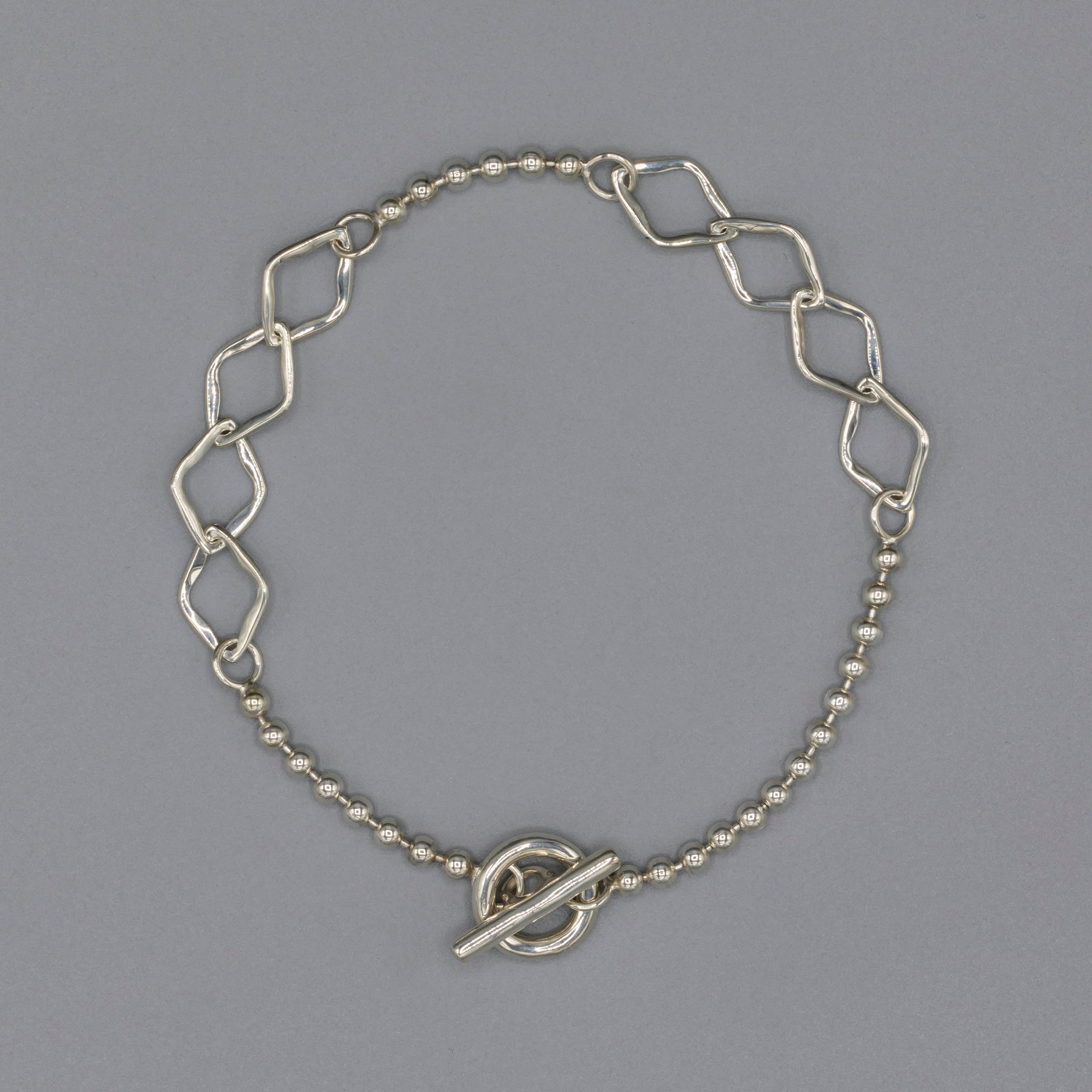 ひし形パーツで軽やかに構成されたブレスレットです。